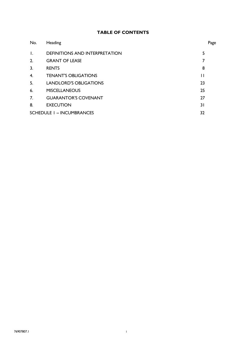 TABLE OF CONTENTS
