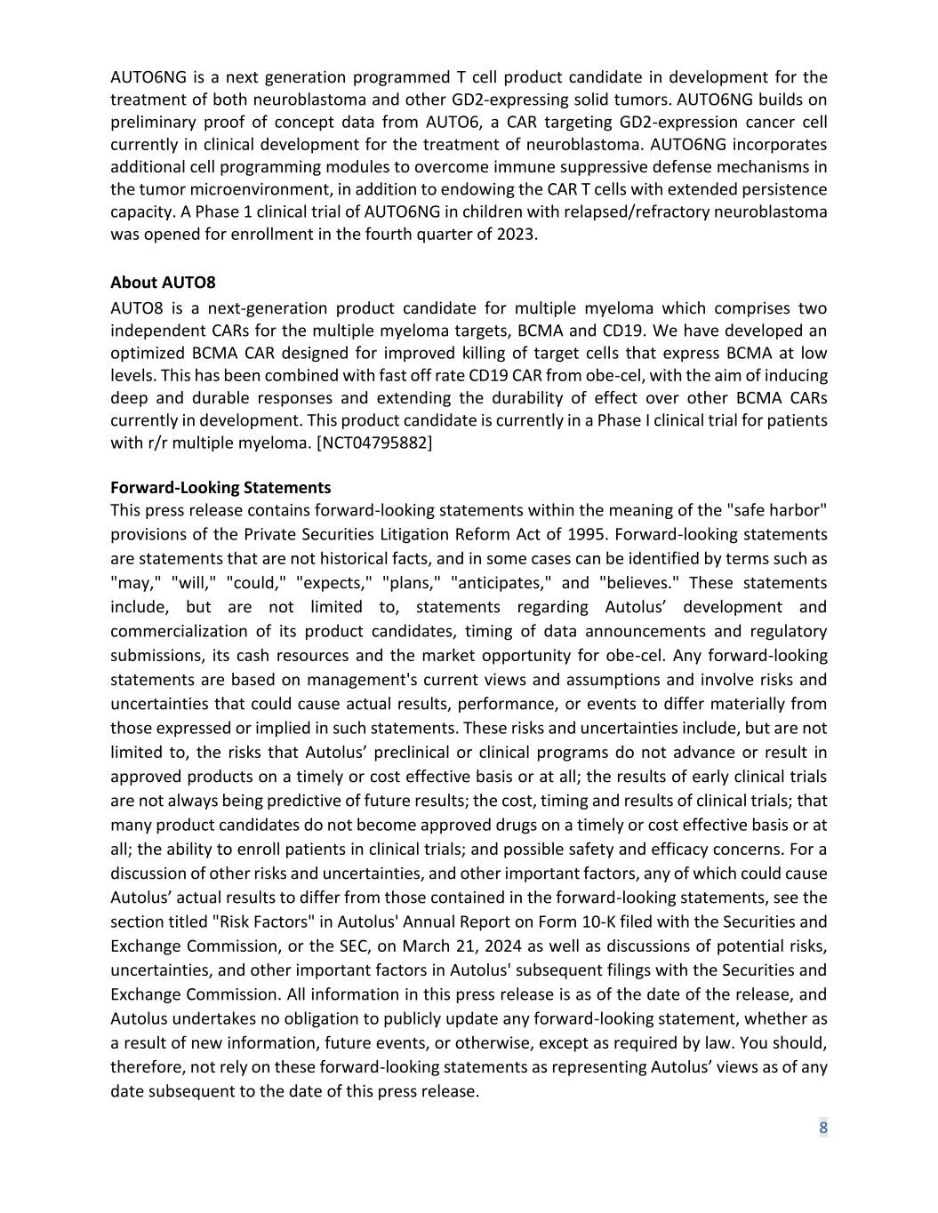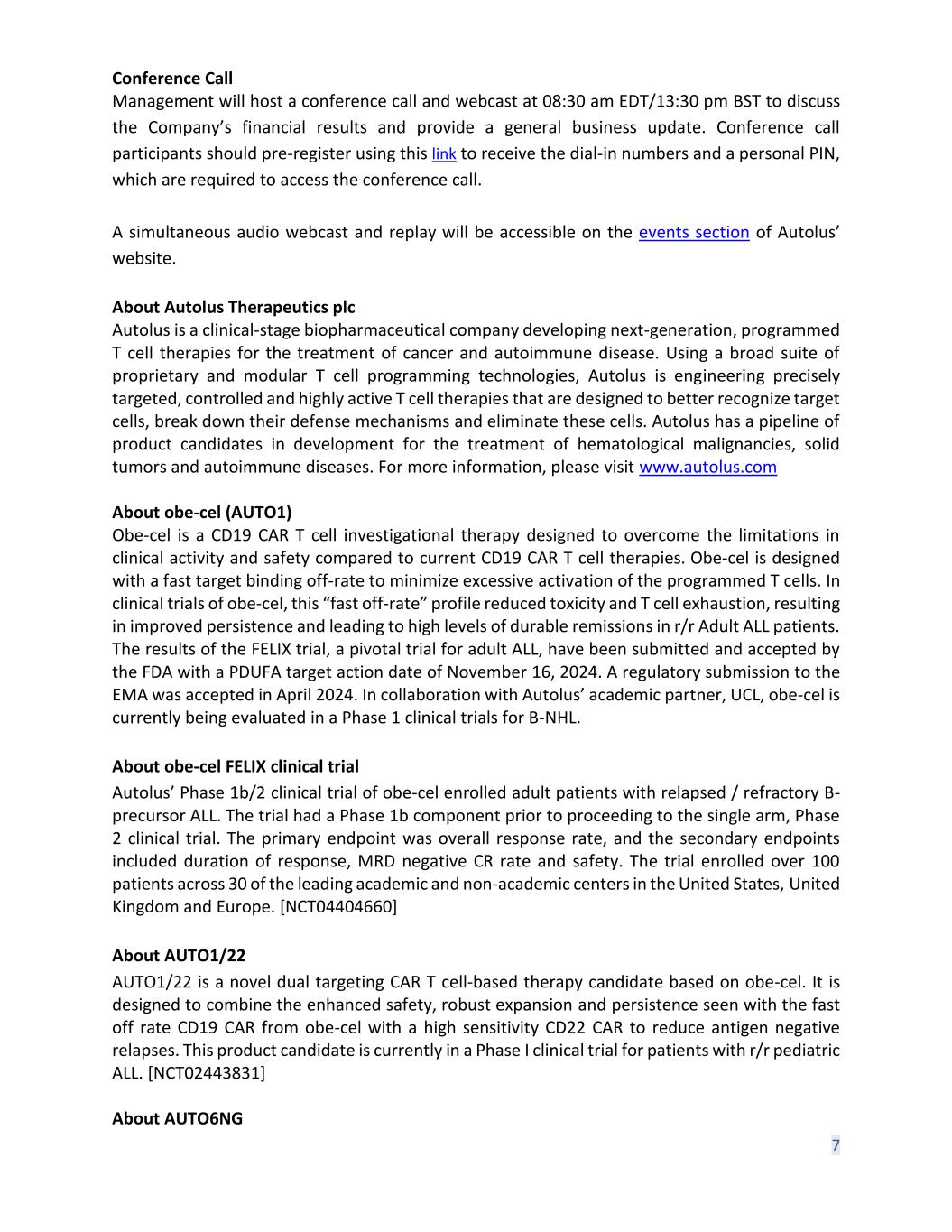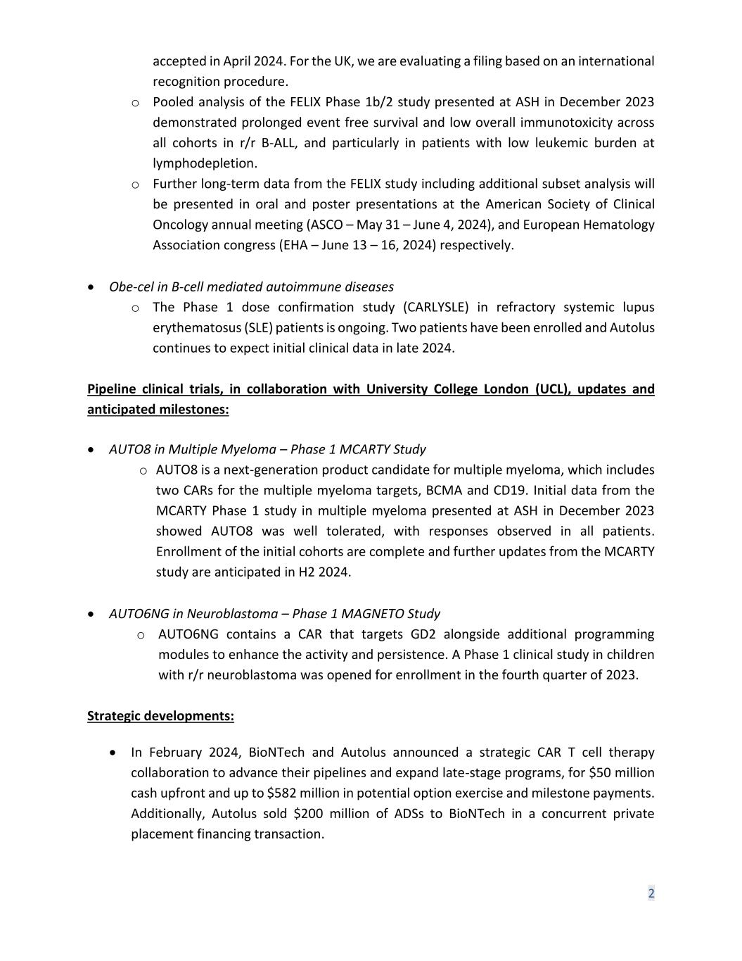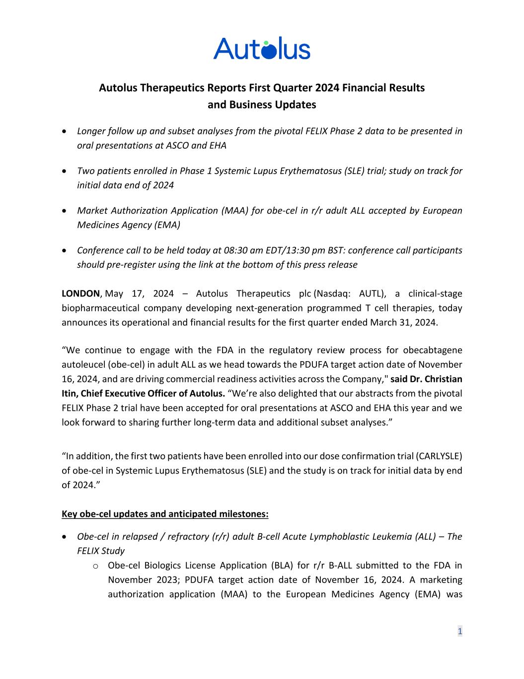 Q1 2024 Financial Results and Business Updates 17 May 2024 Autolus.com
